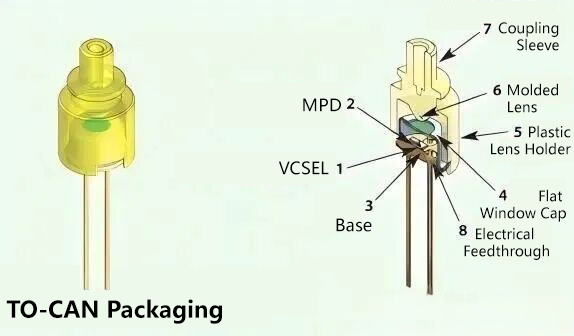 The To-can coaxial package is low-cost and simple to manufacture; however, its small size leads to poor heat dissipation, making it unsuitable for long-distance transmission. It is primarily used in markets with lower demands on transmission distance and rate, such as base stations and PON (Passive Optical Network) for single-channel applications (e.g., 2.5 Gbit/s and 10 Gbit/s short-distance transmission). Resistance welding equipment can be used for To-can hermetic sealing.