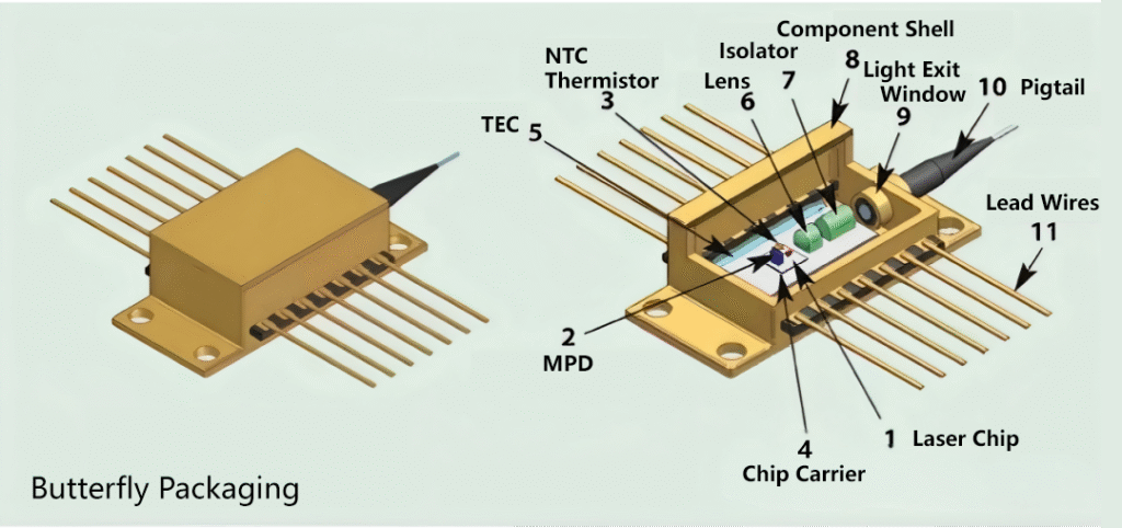 BOX/Butterfly packages are typically rectangular, featuring complex structures. They offer advantages such as multifunctionality and good heat dissipation, making them suitable for long-distance transmission at various rates. They are mainly used in transmission networks, predominantly in multi-channel configurations with high data rates and long distances (including 40G/100G/200G/400G and corresponding coherent optical modules), where reliability is paramount. The BOX package is an upgraded, multi-channel version of the Butterfly package and is suitable for high-speed optical modules at rates of 40G and above. With the advent of the 400G and 800G era, higher demands will be placed on parallel optical design. Parallel seam welding equipment is used to achieve BOX hermetic sealing.